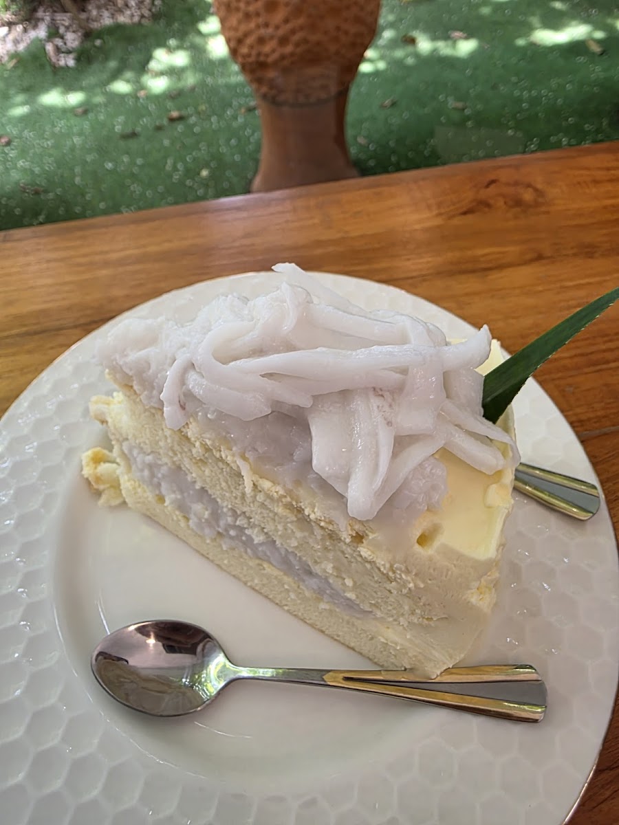 2M Cafe specializes in a delightful assortment of both delicious Thai dishes and an array of mouthwatering cakes that are simply irresistible. Among the standout menu items, you must try their 'ข้าวผัดกระเพราปู' (Crab Pad Krapao), featuring generous chunks of crab that are impeccably cooked and wonderfully flavored. It’s a dish that epitomizes the essence of traditional Thai cuisine, marrying aromatic spices with fresh ingredients. If you're in the mood for something sweet, the 'เคกทุเรียน' (Durian Cake) is a fan-favorite, earning rave reviews for its decadent fluffiness and rich flavor that has left many customers exclaiming '10/10'. For those who crave a dessert that’s both delightful and unique, the 'บานอฟฟีพาย' (Banoffee Pie) has also garnered praise for its perfect balance of sweetness and texture, making it a must-try for dessert lovers.